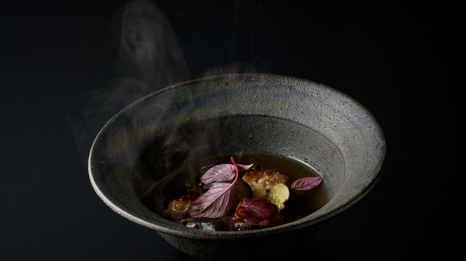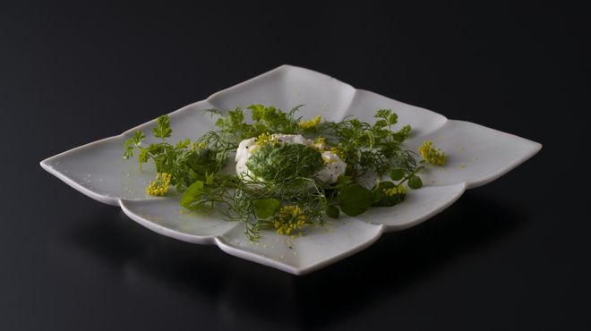 The cuisine combines European and Japanese techniques with a focus on seasonal Japanese ingredients. We use the vessels of Japanese artists to express the beauty of Japan.