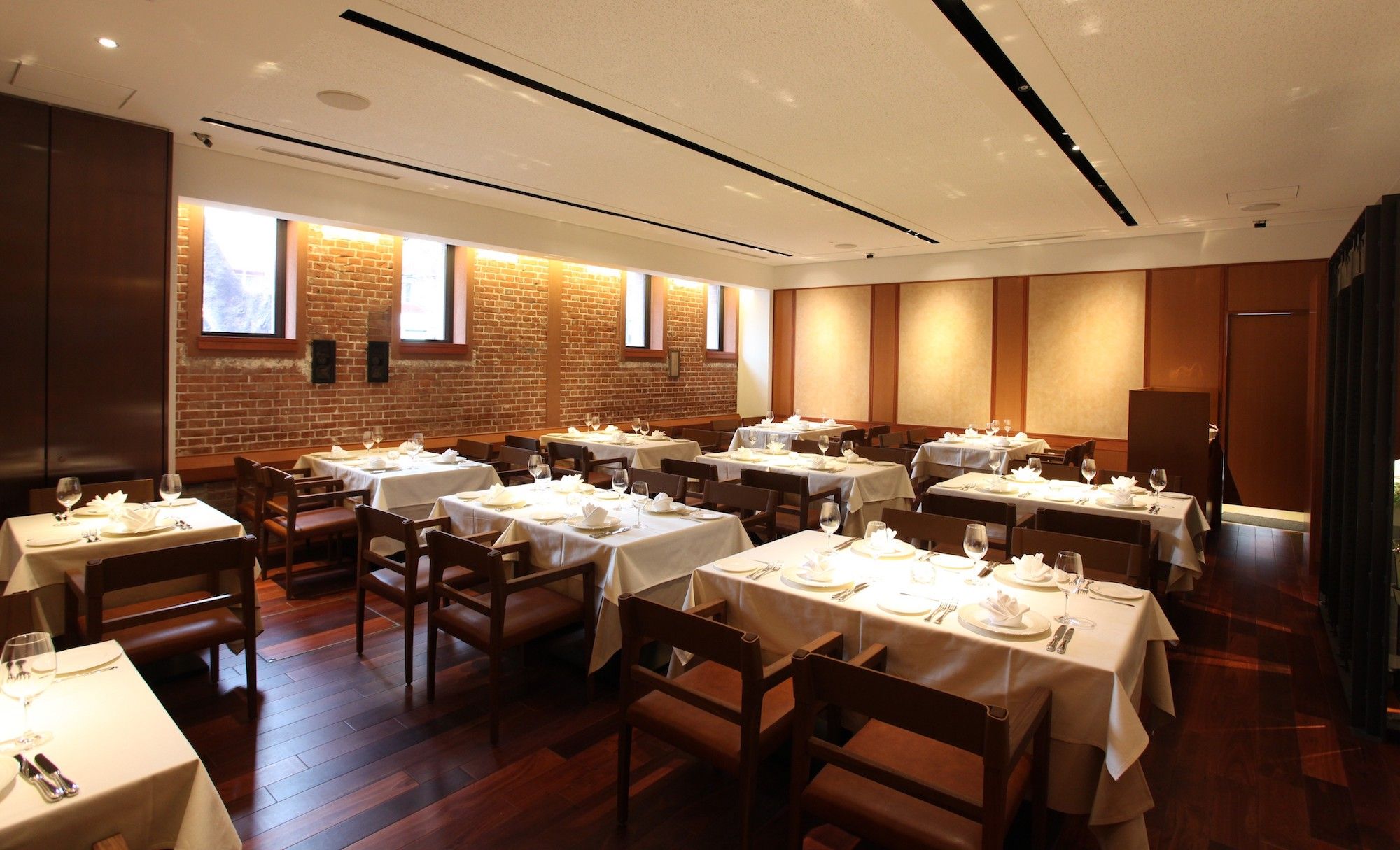 入口にワインセラーを構える店内は、大正5年に建てられたレンガ造りを改装。隠れ家のようなアカデミックな空間で大切な方とのお食事をお楽しみください。フランス料理のエスプリ(精神)を念頭に抱き、和のテイストなどを取り入れ五感で楽しめるモダンフレンチを通年でご提供いたします。