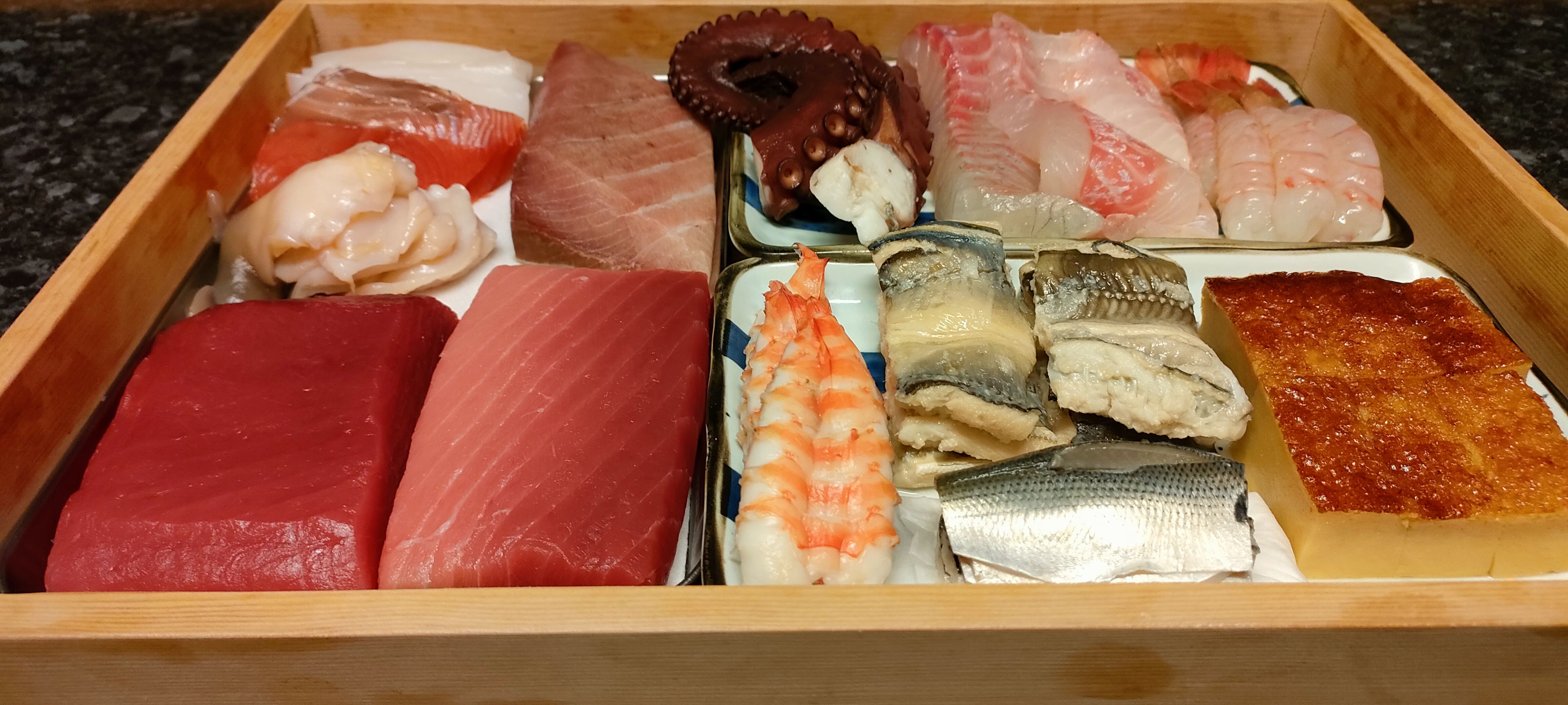 扉を開けると、そこは和の暖かみを感じられる安らぎの空間。「空間と料理、全てが合わさる時間をお愉しみください。」鮨にとっての酢飯は、ネタと同じくらい大切なものです。ネタと同様の温度管理をした酢飯で一貫一貫握られた鮨は、シンプルで繊細な味わいです。ネタの状態によってそのまま握ったり、〆たり、熟成させたりなど様々な調理法でお楽しみください。お客様に喜んでいただけるように、素材の魅力と日々向かい合い、おもてなしいたします。