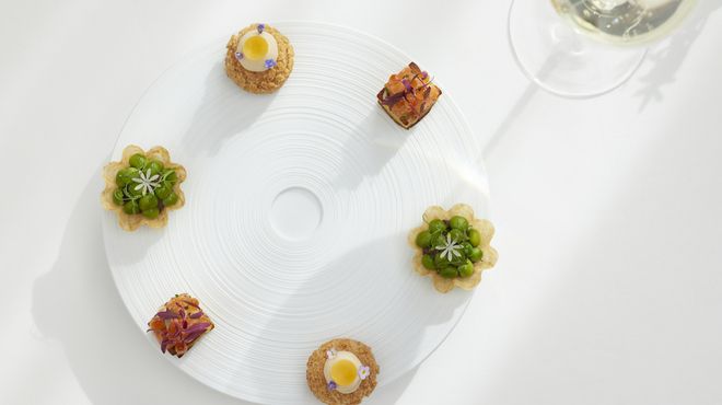 壁や天井などを白で統一した爽やかな内装が特徴的なL'ORANGERIE。まるでヨーロッパにいるかのような極上のフランス料理を堪能することができます。 パリで修業を積んだシェフが生み出す繊細な味わいをフランス産のワインと共にお楽しみください。