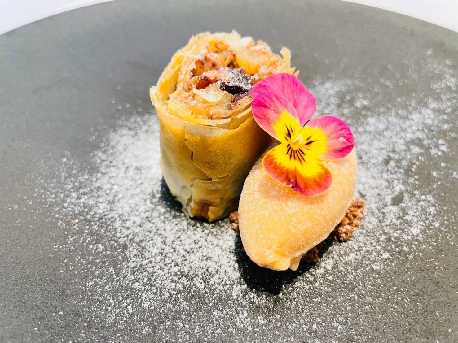 This anniversary course includes a variety of dishes to celebrate your special day, as well as a glass of champagne for a toast and a whole cake.