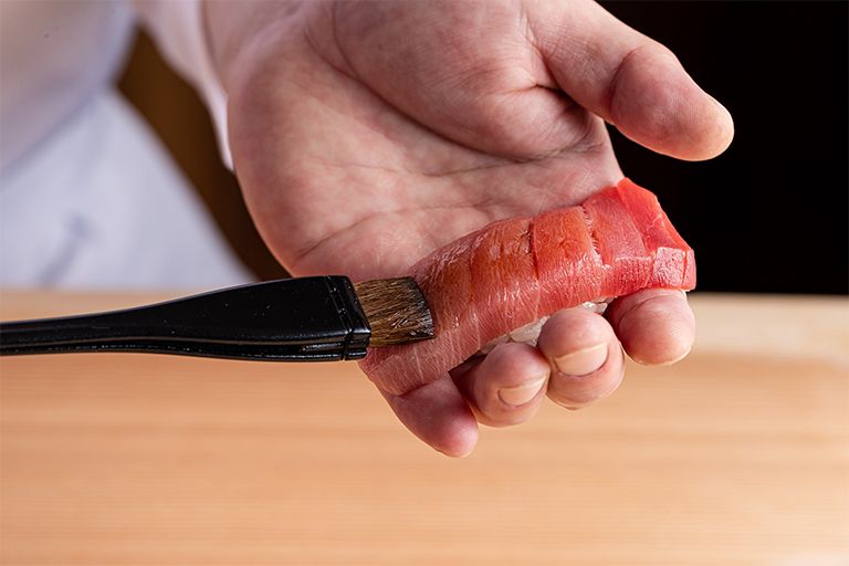 都心の大通り沿いに建つビルの6階にある引き戸をくぐると、檜のぬくもりを感じる純和風の落ち着いた空間が広がります。メニューはコース料理のみです。食材へのこだわりはもちろん、適切な旨味のでる時期を見計らった寝かせにこだわる江戸前技法を用いた最高の鮨を提供。羽釜で炊いたシャリも、赤酢と白酢の塩梅を引き立てた一本にこだわっています。ソムリエが厳選した日本酒やシャンパン、ワインの用意もありますので最高級の鮨と共にお楽しみください。