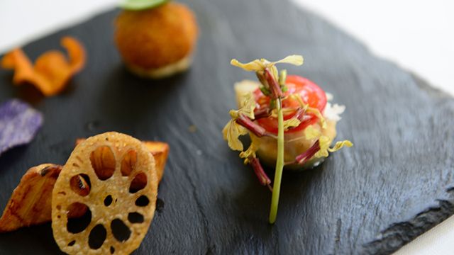 Amuse-bouche Seasonal Fish Carpaccio Conger Eel Yam, Leaf Buds, and Bamboo Shoots Cherry Salmon and Scallop Seaweed Roll Roast Lamb and Green Asparagus Dekopon and Saffron Sorbet After-Dinner Tea